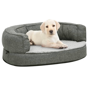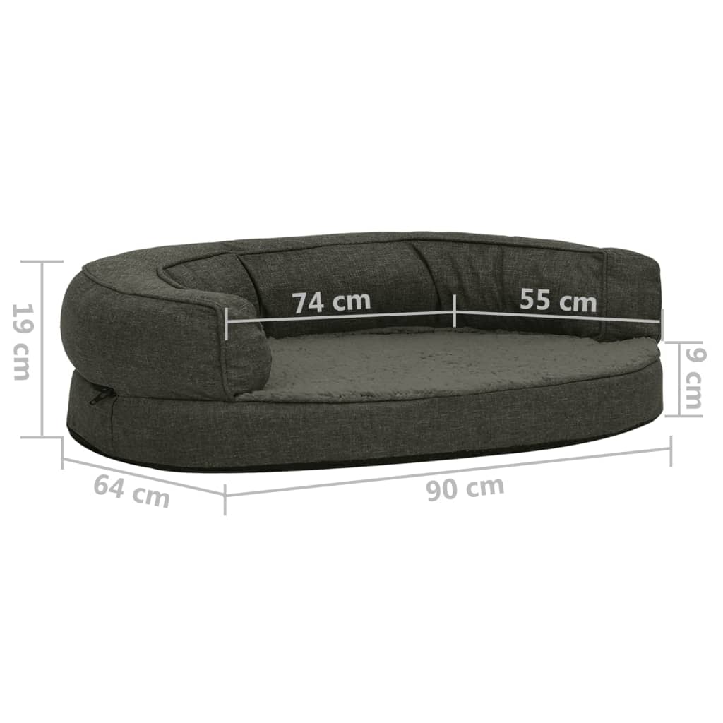Hondenbed ergonomisch linnen-look 75x53 cm fleece donkergrijs