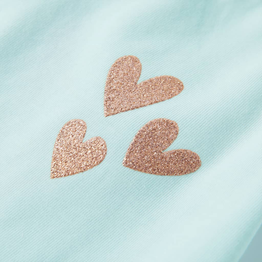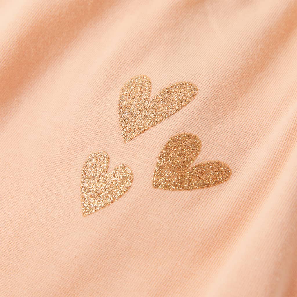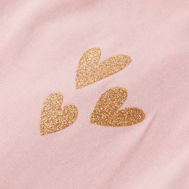 Deze kindertop heeft elastische schouderbandjes en een rechte pasvorm. Dankzij de hartjes van glitters ziet het kindershirt er elegant en mooi uit. De kindertop is gemaakt van 95% katoen en 5% elastaan, waardoor hij zacht en comfortabel aanvoelt.