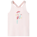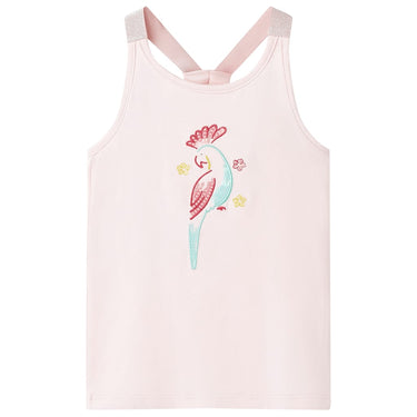 Deze kindertop heeft elastische schouderbandjes en een rechte pasvorm. Dankzij de geborduurde papegaai en bloemen heeft het kindertopje een elegante en mooie uitstraling. De kindertop is gemaakt van 95% katoen en 5% elastaan, waardoor hij zacht en comfortabel aanvoelt.
