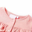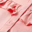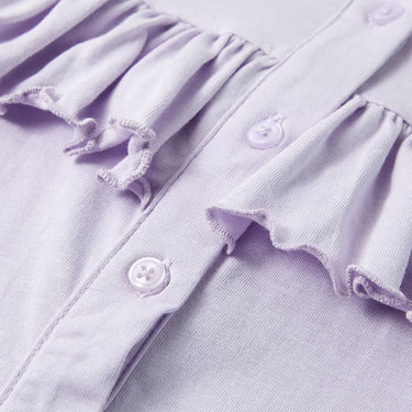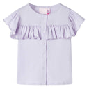 Dit kindershirt heeft korte mouwen, een ronde halslijn, en hij sluit met knopen aan de voorkant. Het kindershirt heeft aan de schouders en op de borst leuke ruches. Het T-shirt is gemaakt van katoen, waardoor het zacht en comfortabel aanvoelt.