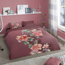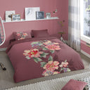 Het dekbedovertrek heeft een elegante print met bloemen op de voorkant en een effen achterkant. Het overtrek heeft een handige rits.