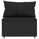 Garten-Mittelsofa mit Kissen Schwarz Poly Rattan