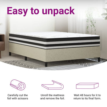 - Voor je gemak is het matras samengeperst en opgerold in een doos, zodat je hem gemakkelijk kunt verplaatsen en in je kamer kunt leggen.