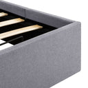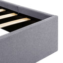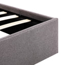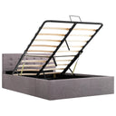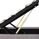 Dit beklede bed verandert de ongebruikte ruimte onder je matras in opbergruimte. Zo heb je voldoende ruimte voor het opbergen van kleding, dekens, beddengoed, enz. Het hydraulische frame blijft omhoog staan als hij omhoog is getild, zo heb je beide handen vrij om spullen op te bergen of te pakken.