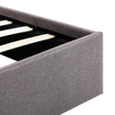 Het gepoedercoat stalen frame en de multiplex lattenbodem dragen bij aan de stevigheid en duurzaamheid van het bed. Dit opbergbed is bekleed met duurzame stof, ziet er uitnodigend uit en is gemakkelijk te onderhouden. Dit product is eenvoudig te monteren. Dit slaapkamermeubel is geschikt voor een matras van 100 x 200 cm.