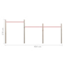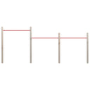 Deze optrekstang wordt ondersteund door 3 geïmpregneerd grenenhouten palen, waardoor hij stevig, stabiel en rotbestendig is. De stalen stangen hebben een zeer gladde afwerking voor gemakkelijk duikelen. Dit product helpt bij het trainen van veel spiergroepen in het bovenlichaam, waaronder de vingers, armen, rug en borst.
