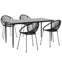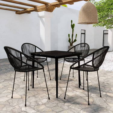 This dining table has a powder-coated steel frame, making it sturdy, stable, and suitable for daily outdoor use. The smooth glass tabletop is easy to clean with a damp cloth and perfect for placing meals, drinks, or decorative items. The chairs are made of PVC rattan and powder-coated steel frames, making them sturdy and easy to clean. The garden chairs are designed with curved back and armrests, providing ultimate seating comfort.