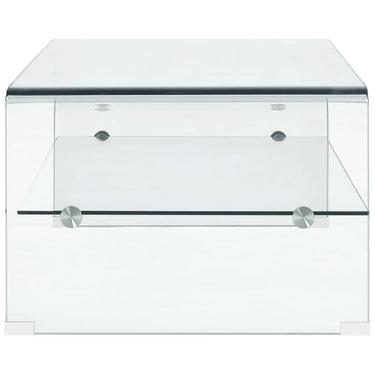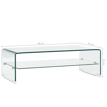 De salontafel is gemaakt van gehard veiligheidsglas dat veiliger en sterker is dan normaal glas. Dankzij het geïntegreerde schap helpt deze praktische salontafel om je leefruimte opgeruimd te houden omdat hij perfect is voor boeken, tijdschriften en verschillende andere kleine spullen die je binnen handbereik wilt houden. Bovendien maakt de stevige constructie de tafel buitengewoon duurzaam.