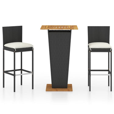 3-delige Tuinbarset met kussens poly rattan zwart