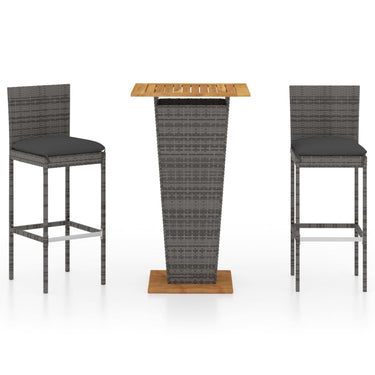 3-piece garden bar set with cushions poly rattan