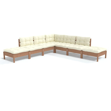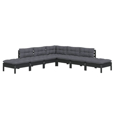 7-piece lounge set with cushions, black pine wood