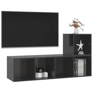 2-delige Tv-meubelset spaanplaat hoogglans grijs