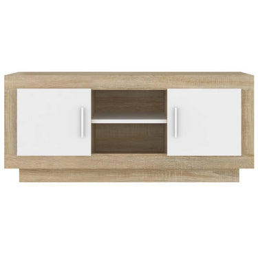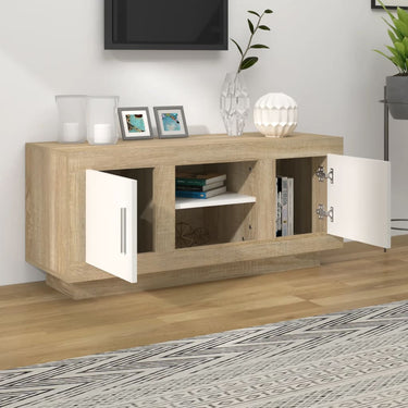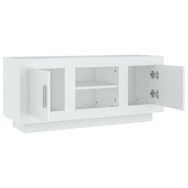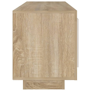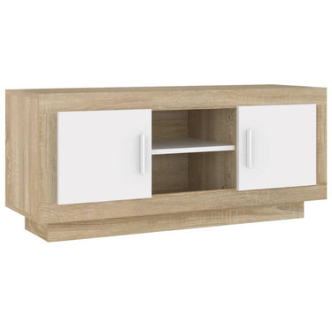 Dit televisiemeubel heeft een strak en trendy design, waardoor het een decoratieve en praktische aanvulling op je interieur is.