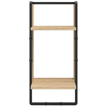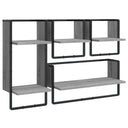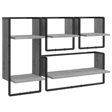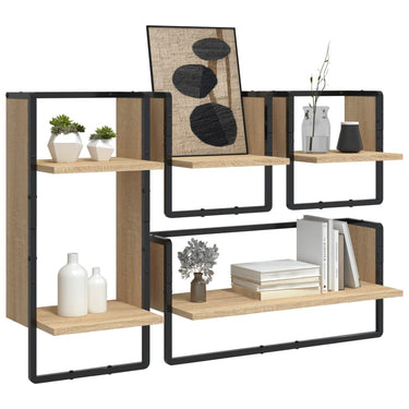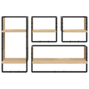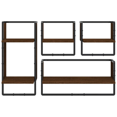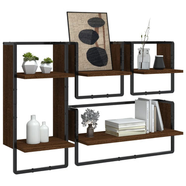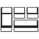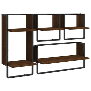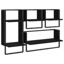 4-delige Wandschappenset met stangen bewerkt hout zwart