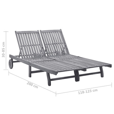 2-Personen-Sonnenliege mit Auflage Grau Akazie Massivholz