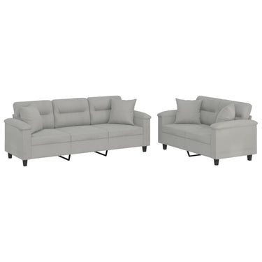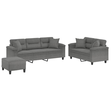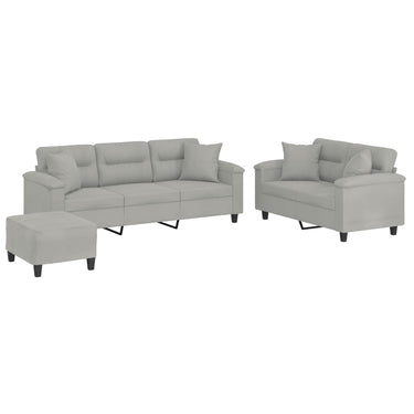 3-delige Loungeset met kussens microvezelstof lichtgrijs