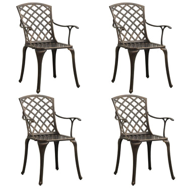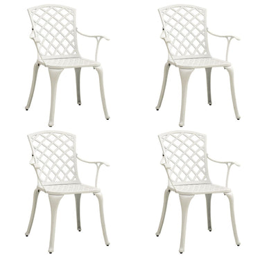 De tuinstoelen en -tafel zijn gemaakt van gietaluminium waardoor ze zowel stevig als duurzaam zijn. Het roest- en weerbestendige materiaal maakt de meubelset ideaal voor buitengebruik. De prachtige patronen maken van de set een elegante aanvulling op je buitenruimte. Bovendien heeft de tafel een parasolgat waar je parasol perfect in past, om je te beschermen tegen zon of regen.