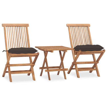 3-piece garden set foldable with cushion solid teak wood