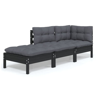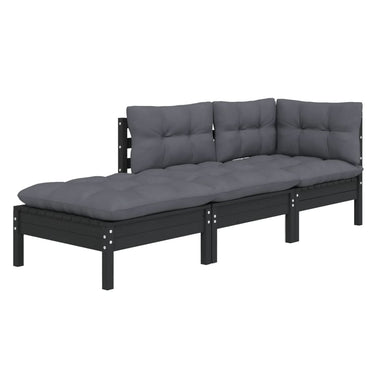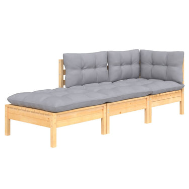 3-delige Loungeset met crèmekleurige kussens massief grenenhout