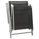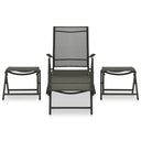 Het gepoedercoat aluminium frame maakt de set stevig en duurzaam. De armstoel heeft een verstelbare rugleuning, zodat je altijd de meest comfortabele houding kunt vinden. De zitting is comfortabel met ademend textileen. De voetensteunen dragen bij aan het comfort. Je kunt ze ook gebruiken als tafeltjes om drankjes en etenswaren binnen handbereik te plaatsen.