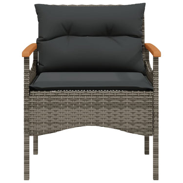 - Materiaal: PE-rattan, gepoedercoat staal en massief acaciahout met olieafwerking