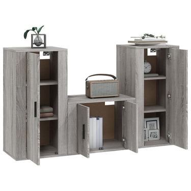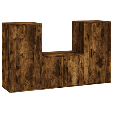 3-delige Tv-meubelset bewerkt hout gerookt eikenkleurig