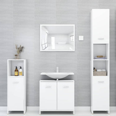 Deze 4-delige badkamermeubelset heeft veel opbergruimte en is een chique en tijdloze aanvulling op elke badkamer of wasruimte.
