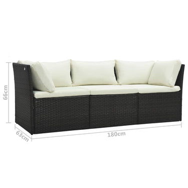 - Afmetingen driezitsbank: 180 x 63 x 66 cm (B x D x H)