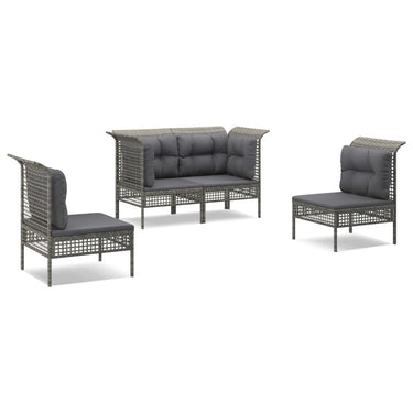 4-delige Loungeset met kussens poly rattan grijs