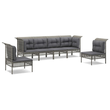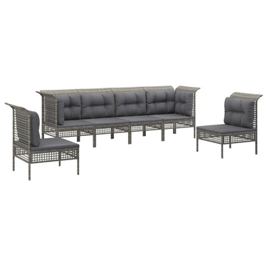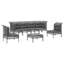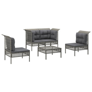 5-piece lounge set with cushions poly rattan gray