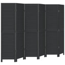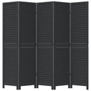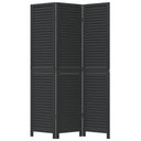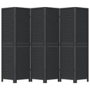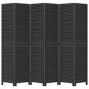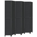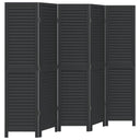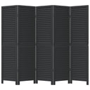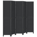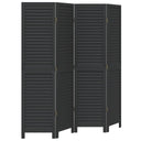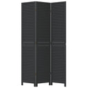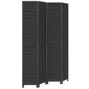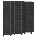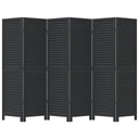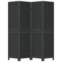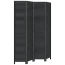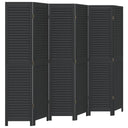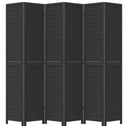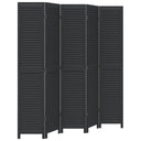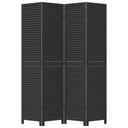 4-tlg. Paravent Schwarz Massivholz Paulownia