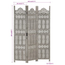 Kamerscherm 3 panelen handgesneden 120x165 cm mangohout grijs