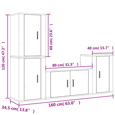 4-delige Tv-meubelset bewerkt hout gerookt eikenkleurig