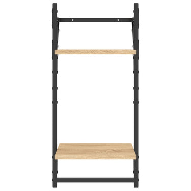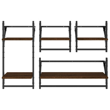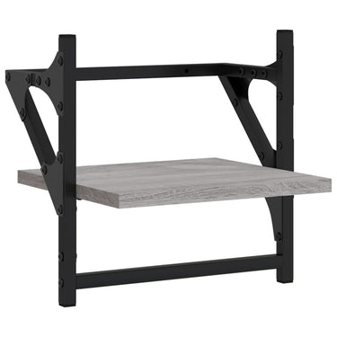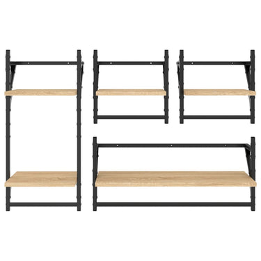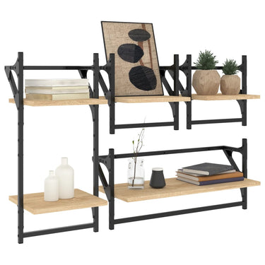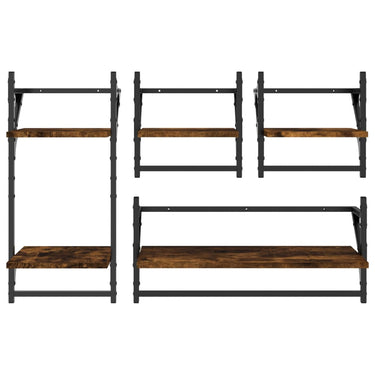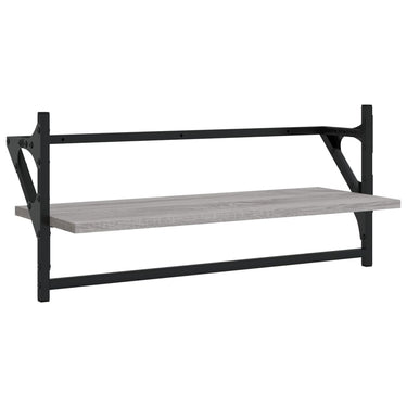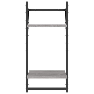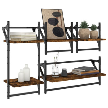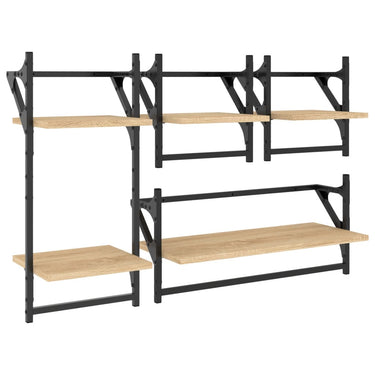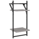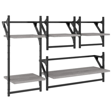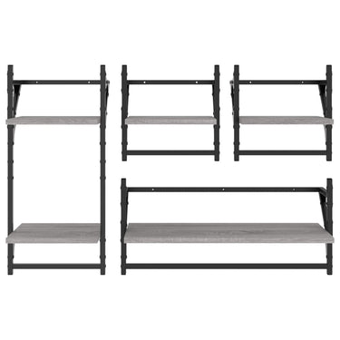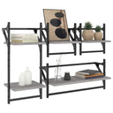 4-delige Wandschappenset met stangen bewerkt hout grijs sonoma