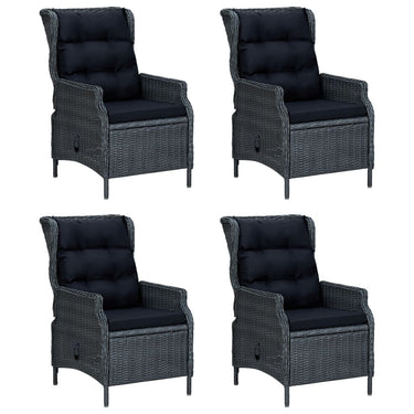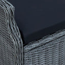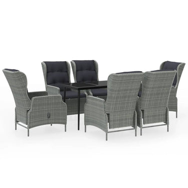 De praktische tuinset heeft een stalen frame, waardoor hij sterk en stevig is. De tuinstoelen zijn gemaakt van waterafstotend en onderhoudsvrij PE-rattan, waardoor ze perfect zijn voor in de tuin. De dik gevoerde kussens zorgen voor extra comfort tijdens het eten. De kussenhoes is voorzien van een ritssluiting, hij is afneembaar en te wassen. Dankzij het gasveermechanisme is ook de rugleuning naar wens verstelbaar. Middels de knop aan de zijkant kan de rugleuning naar achteren versteld worden, voor een comfortabele positie. Daarnaast is het vlakke, glazen tafelblad makkelijk schoon te maken met een vochtige doek en zeer geschikt voor het plaatsen van maaltijden, drankjes en andere decoratieve spullen.