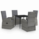 De gepoedercoat stalen frames maken de tafel en stoelen sterk, stevig en geschikt voor dagelijks gebruik. Dankzij het waterbestendige PE-rattan zijn de stoelen gemakkelijk schoon te maken en slijtvast. De rugleuning is te verstellen door aan de knop aan de zijkant te trekken. Dankzij de lichtgewicht constructie zijn de stoelen gemakkelijk te verplaatsen en de dik gevoerde zitkussens zorgen voor extra comfort. De onderhoudsarme, polyester hoezen zijn afneembaar en kunnen gewassen worden. Daarnaast is het vlakke, glazen tafelblad eenvoudig schoon te maken met een vochtige doek. Het blad is perfect voor het plaatsen van maaltijden, drankjes en decoratieve spullen.