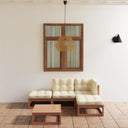 De set is gemaakt van massief grenenhout, waardoor hij stevig en stabiel is. De kussens bieden extra comfort. Je kunt hem combineren met andere modulaire segmenten om zo je eigen persoonlijke loungeset samen te stellen!