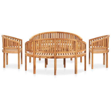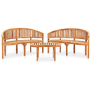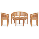 3-piece banana-shaped solid teak wood lounge set