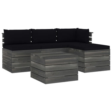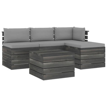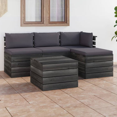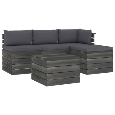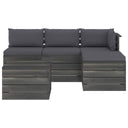 5-delige Loungeset pallet massief grenenhout donkergrijs