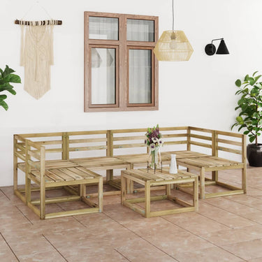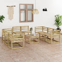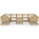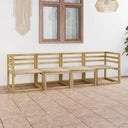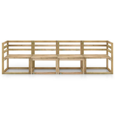 This lounge set is made of impregnated pine wood and is durable and weather-resistant. The garden bench has a solid construction and requires little maintenance. Combined with thickly padded cushions (not included), our lounge set offers the highest comfort. Additionally, you can arrange the set in any desired configuration, thanks to the modular design.
