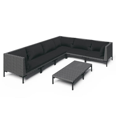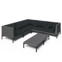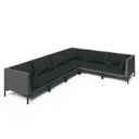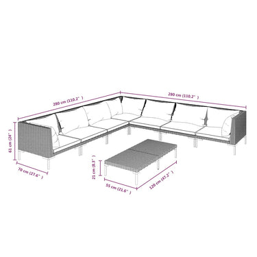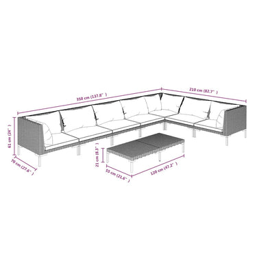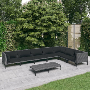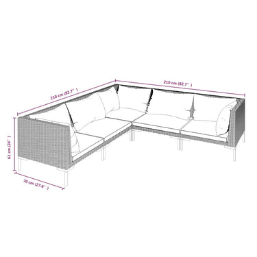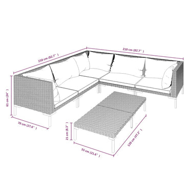 7-delige Loungeset met kussens poly rattan donkergrijs