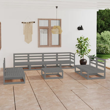 9-piece lounge set solid pine wood gray