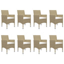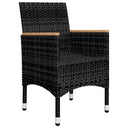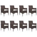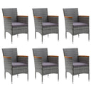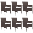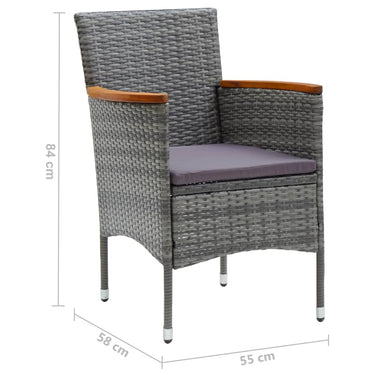 De eettafel is gemaakt van massief acaciahout met een olieafwerking, waardoor hij stabiel, duurzaam en gemakkelijk te onderhouden is. De eetstoelen hebben een gepoedercoat stalen frame bedekt met weerbestendig PE-rattan waardoor ze stevig en gemakkelijk schoon te maken zijn. Elke stoel is ontworpen met gebogen rug- en armleuningen voor een meer ergonomische vorm. Elke zitting heeft een afneembaar, dik gevoerd kussen voor extra comfort.