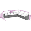9-delige Loungeset met kussens poly rattan lichtgrijs