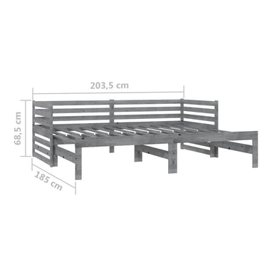 Slaapbank uitschuifbaar massief grenenhout grijs 2x(90x200) cm