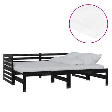 Ausziehbares Tagesbett 2x(90x200) cm Schwarz Massivholz Kiefer