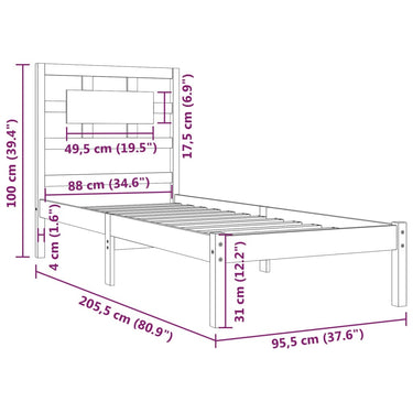 Bedframe solid pine wood 90x200 cm