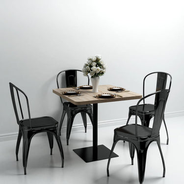 Het tafelblad is gemaakt van MDF met een nervenafwerking en wordt ondersteund door een stalen poot en basis. Het is gemakkelijk schoon te maken met een vochtige doek. Gebruik de tafel als aanvulling op je interieur, restaurant, koffiebar of lunchroom.