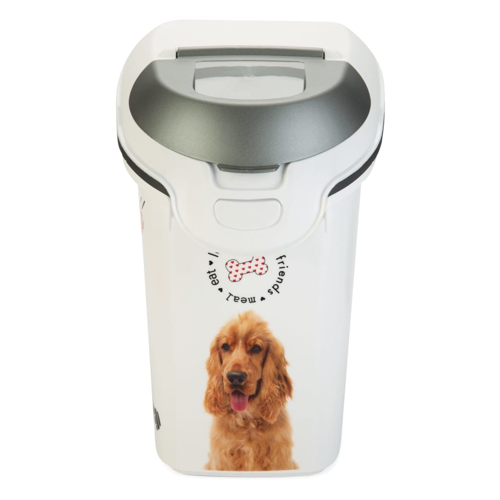 Bovendien is deze duurzame, kunststof voedselcontainer niet alleen praktisch, maar heeft hij ook een aantrekkelijke uitstraling met een selectie leuke hondenprints.