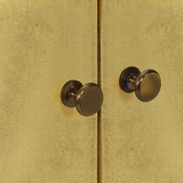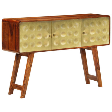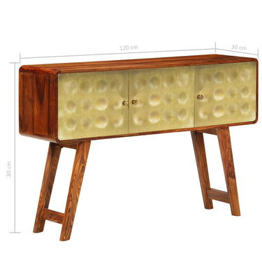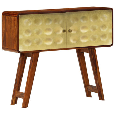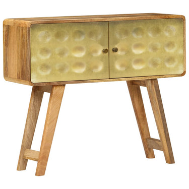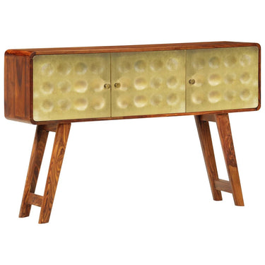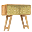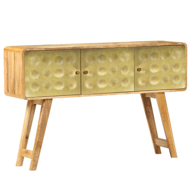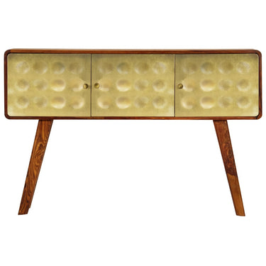 Ons houten dressoir in retro stijl heeft aan de voorzijde een decoratieve gouden print en geeft je woonruimte een vleugje luxe.